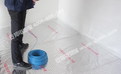 施工材料:安邦雙導(dǎo)發(fā)熱電纜,型號ABV0013300 TXLP/2R/17;智能溫度控制器;地暖感溫探頭;地暖專用保溫板;地暖專用反射膜;鋼絲網(wǎng)、地暖專用鋁鉑膠帶、卡釘?shù)取?/span>