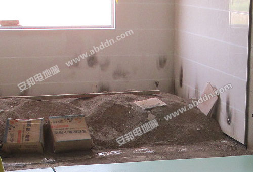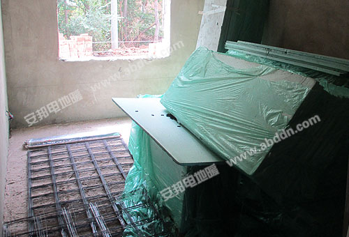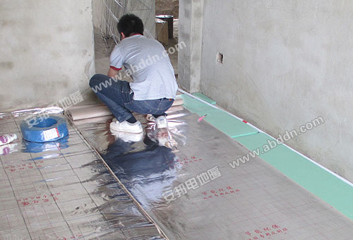 使用材料:安邦雙導(dǎo)發(fā)熱電纜,型號(hào)ABV0012800 TXLP/2R/17;智能溫度控制器;地暖感溫探頭;地暖專用保溫板;地暖專用反射膜;鋼絲網(wǎng)、地暖專用鋁箔膠帶、卡釘?shù)取?/span>