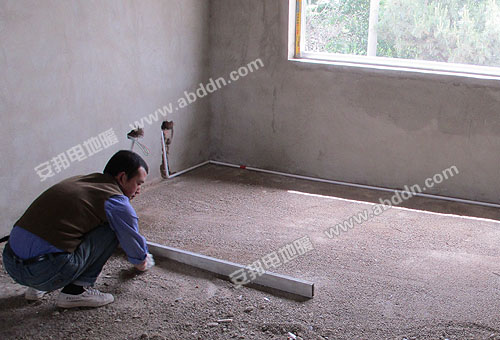 (1)清理施工現(xiàn)場(chǎng);測(cè)量地面及踢腳線的整體平整度,并把水平線標(biāo)在每個(gè)房間的墻面上,用1:3水泥沙拌勻找平,確保所有房間地面在同一水平線上。