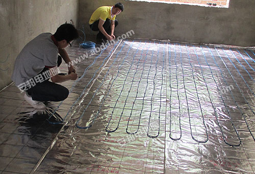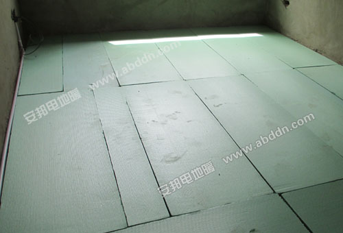 (2)鋪設(shè)絕緣保溫層:將聚苯乙烯保溫板鋪設(shè)在平整的結(jié)構(gòu)面上。電地暖地面保溫層鋪設(shè)時(shí)應(yīng)切割整齊,保溫板間不得有間隙,并用膠帶黏接平整。