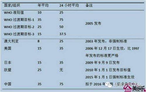 世衛(wèi)組織為各國(guó)提出了非常嚴(yán)格的PM2.5標(biāo)準(zhǔn),全球大部分城市都未能達(dá)到該標(biāo)準(zhǔn)。針對(duì)發(fā)展中國(guó)家,世衛(wèi)組織也制訂了三個(gè)不同階段的準(zhǔn)則值,其中第一階段為最寬的限值,新標(biāo)準(zhǔn)的PM2.5與該限值統(tǒng)一,而PM10此前的標(biāo)準(zhǔn)寬于第一階段目標(biāo)值,新標(biāo)準(zhǔn)也將其提高,和世衛(wèi)組織的第一階段限值一致。