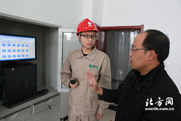 國網(wǎng)天津靜海公司員工與校方交談了解供暖系統(tǒng)后臺運(yùn)行情況