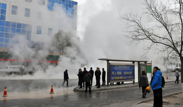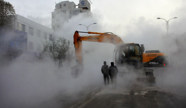 供熱管網發(fā)生泄漏現(xiàn)場