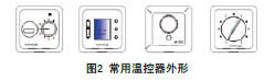 各廠家生產(chǎn)的溫控器,雖在原理、構(gòu)造上有所不同,但在外形上都是按照86×86標(biāo)準(zhǔn)尺寸制造的。有的為溫度旋鈕,有的還可以簡單編程。外形參見圖2。